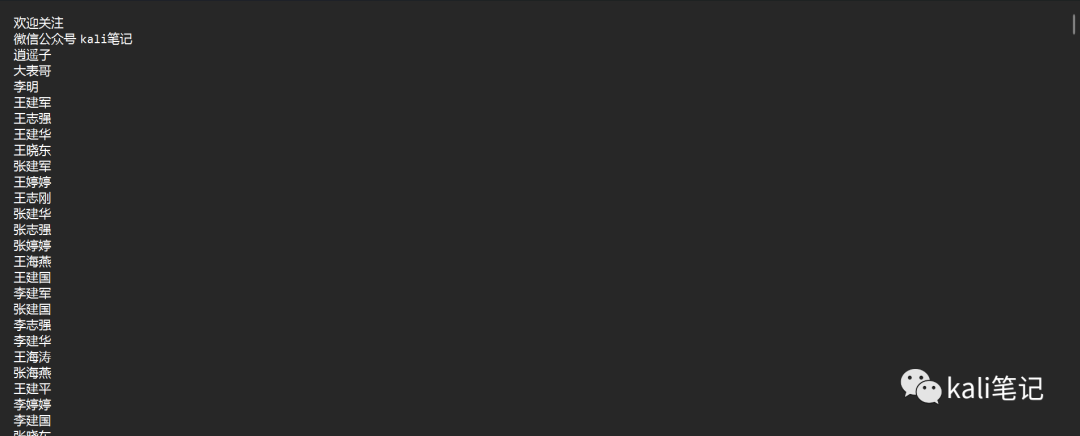 接下来,我们准备一个用户姓名文件。如下