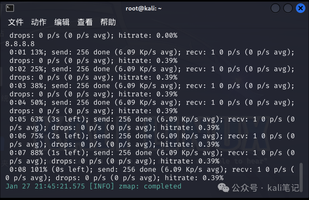 Zmap以超过 nmap 1300 倍的扫描速度声名鹊起。相比大名鼎鼎的 nmap 全网扫描速度是他最大的亮点。在千兆网卡状态下,45 分钟内扫描全网络 IPv4 地址。