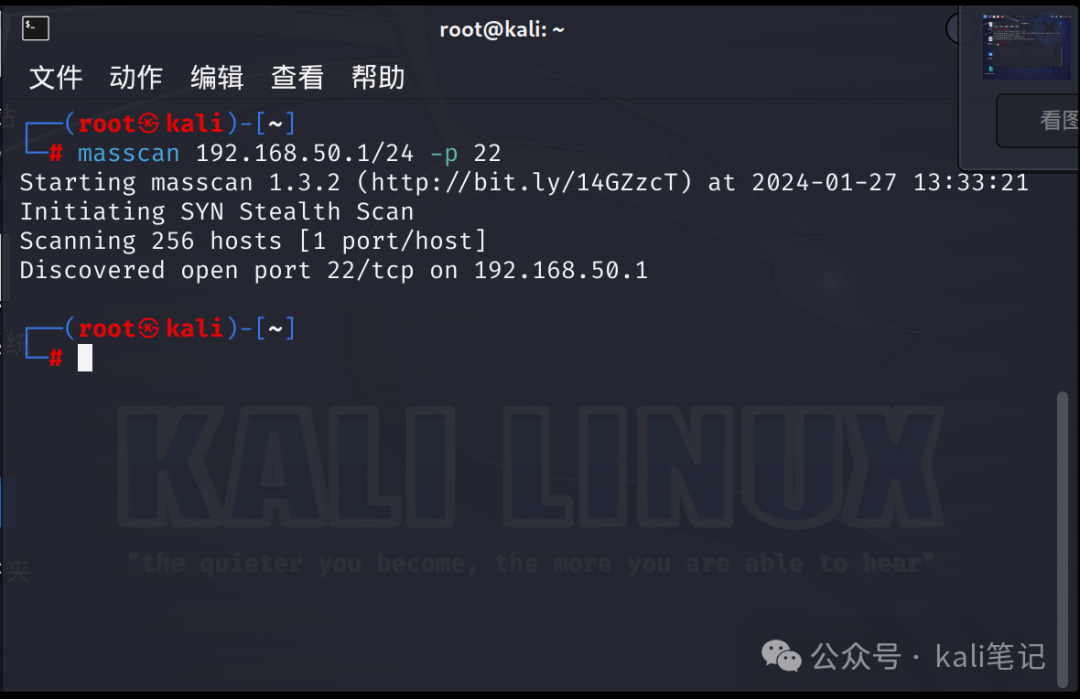 masscan和nmap一样,都是扫描界的扛把子。两者相比都有其优缺点,masscan号称“世界上最快的人”😘。能够在几分钟扫描整个子网段。但是精准度和nmap相比还是差了那么一点。