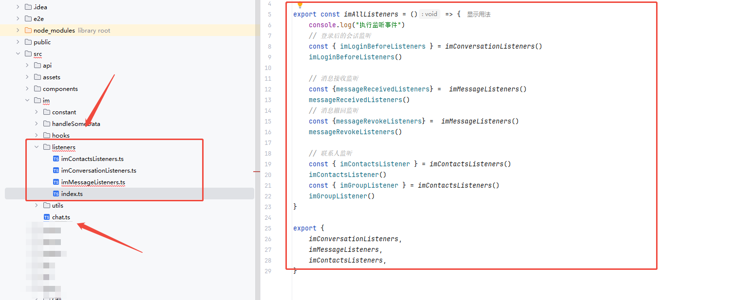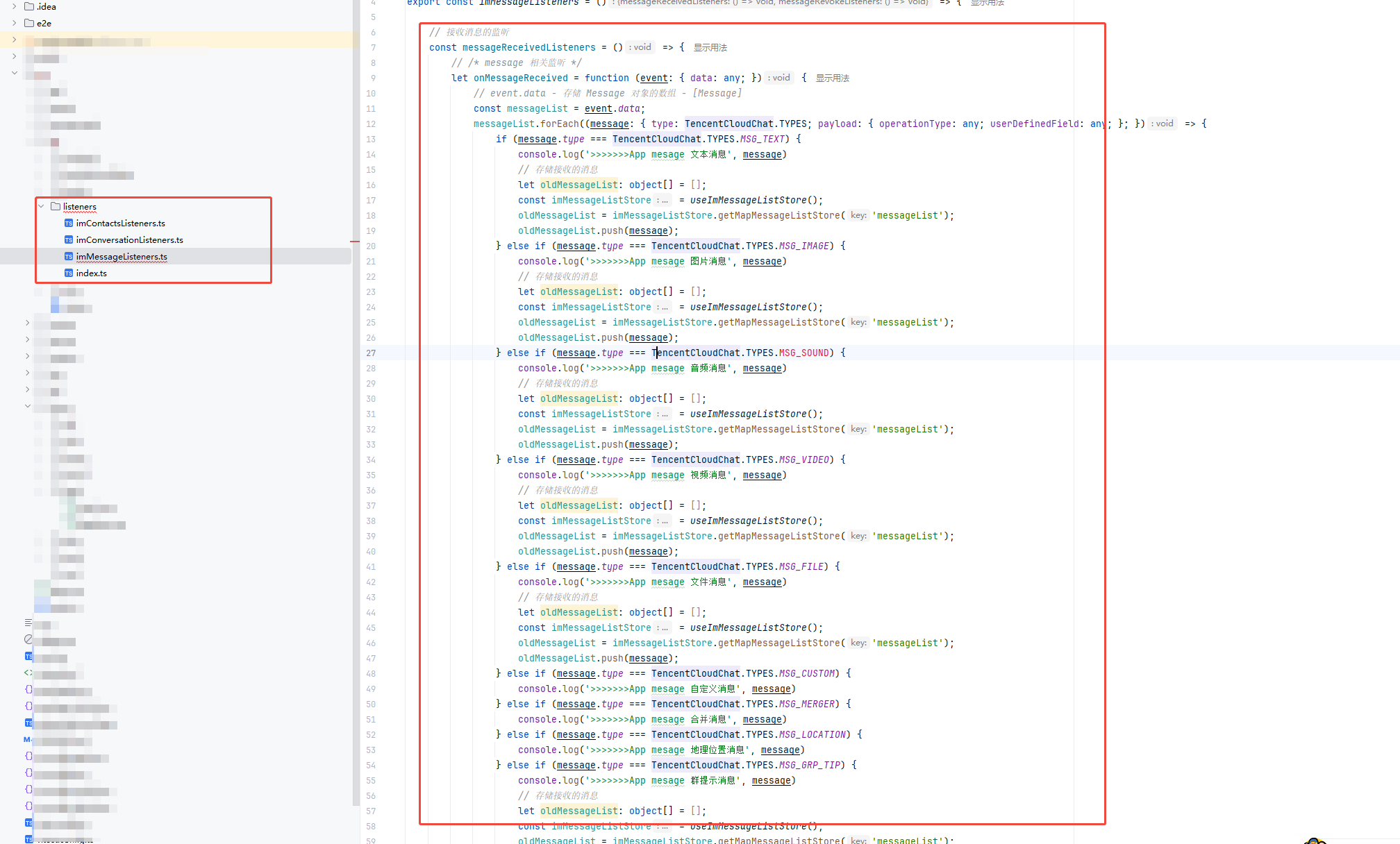 2、要在项目开发之处就要通过IM的监听事件,全局初始化监听,并且是在IM的登录之前就引入监听事件,否则经常出现,明明自己使用了IM的监听事件,但是接收不到消息参考下文。