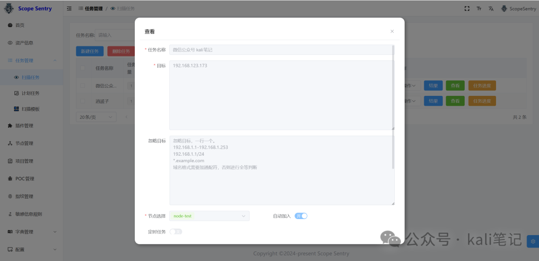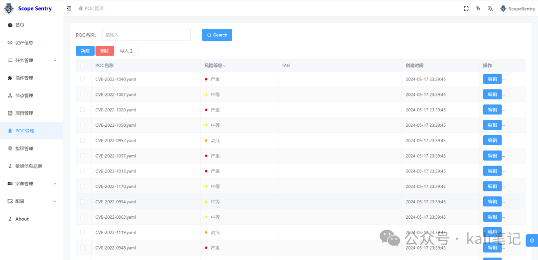是一款具有资产测绘、子域名枚举、信息泄露检测、漏洞扫描、目录扫描、子域名接管、爬虫、页面监控功能的工具,通过构建多个节点,自由选择节点运行扫描任务。当出现新漏洞时可以快速排查关注资产是否存在相关组件。