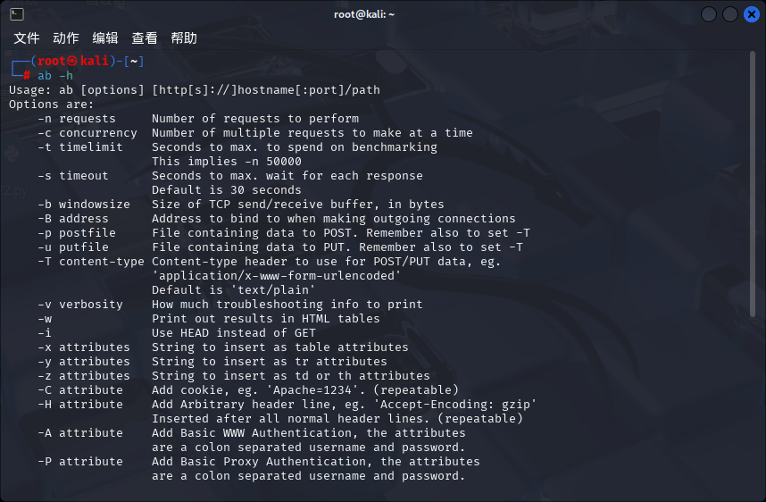 是 concurrency ,模拟1000个并发用户,即发起10个并发请求ab -t 1000 -c 1000 https://blog.bbskali.cn/