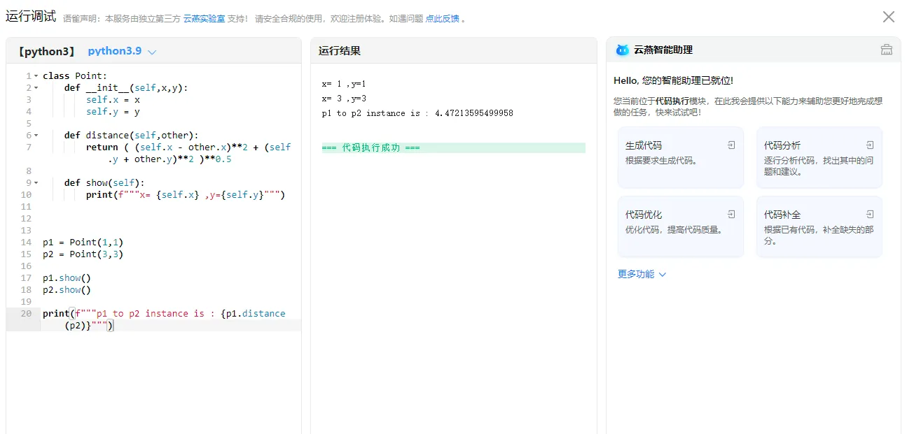 print(f"""p1 to p2 instance is : {p1.distance(p2)}""")