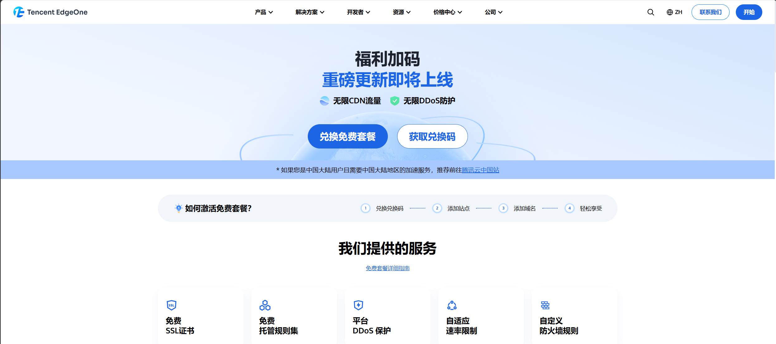 作为一名个人站长,我深知在有限的预算下如何为网站提供稳定、快速的服务是关键。腾讯云推出了 EdgeOne免费版 https://edgeone.ai/zh/redemption已经有一段时间。结合我的实际体验,我想从国内备案域名的角度,分享一下如何利用这个工具提升网站性能和安全性。