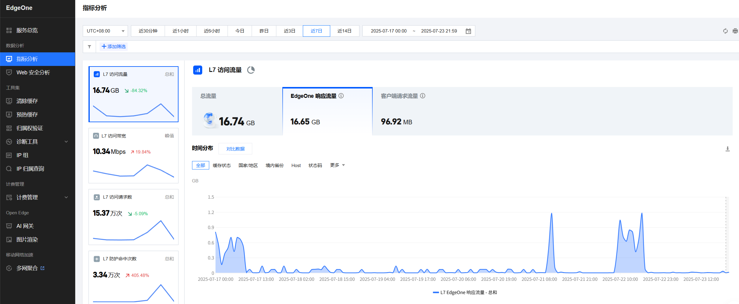 EdgeOne的控制台界面简洁,即使是新手也能快速完成域名绑定、缓存规则设置等操作。免费版的流量和性能限制(如无限制流量、自定义规则)对个人站点完全够用。