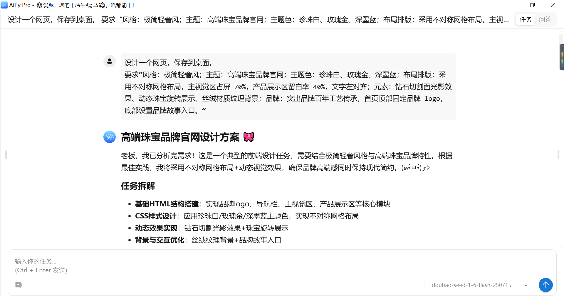现在,AiPy 工具带着颠覆性解决方案来了 —— 掌握精准提示词公式,让你一分钟生成专业网页,把更多时间留给创意设计!今天就手把手教你这套专为设计师打造的网页生成秘籍,附 4 个高适配行业案例。