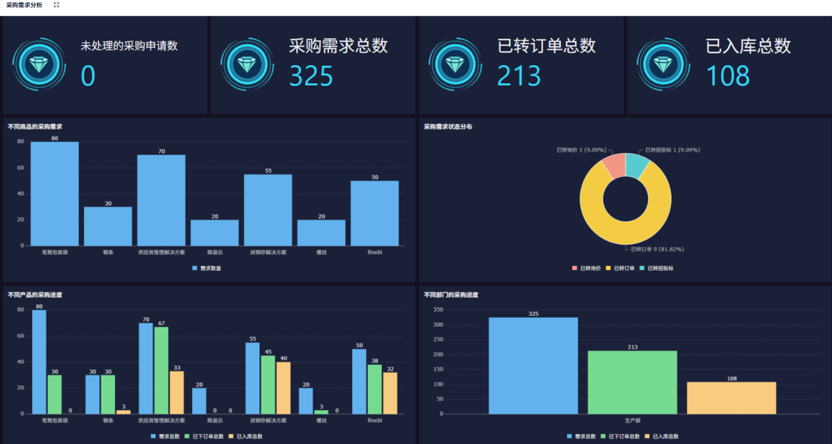 采购需求分析模块用于分析企业的采购需求,并展示与供应商的匹配度。通过该功能,管理层能够看到当前的采购需求趋势,确保采购计划的准确性。