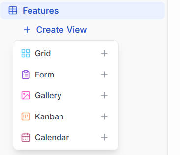 默认数据库里有一张默认表叫Features,可以在下面创建不同的View。