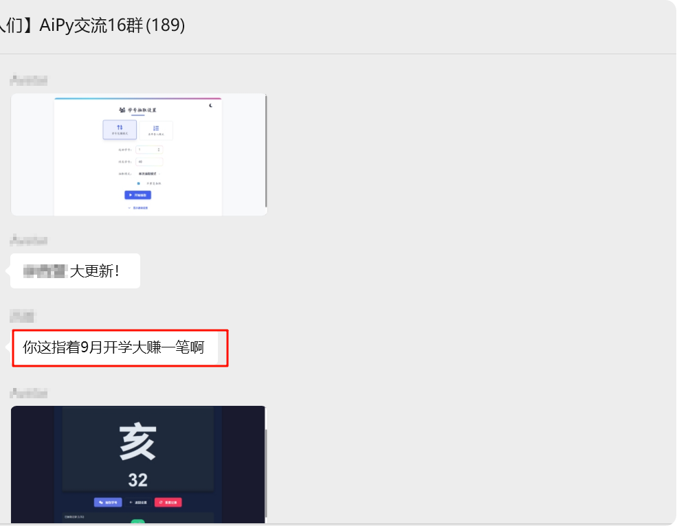 偶然间在AiPy交流群里面看见有客户使用了AiPy变现——原来真有人靠它悄悄赚了第一桶金!瞬间被点醒:AI 再厉害终究是工具,与其惊叹技术酷炫,不如琢磨怎么用它提效搞钱。