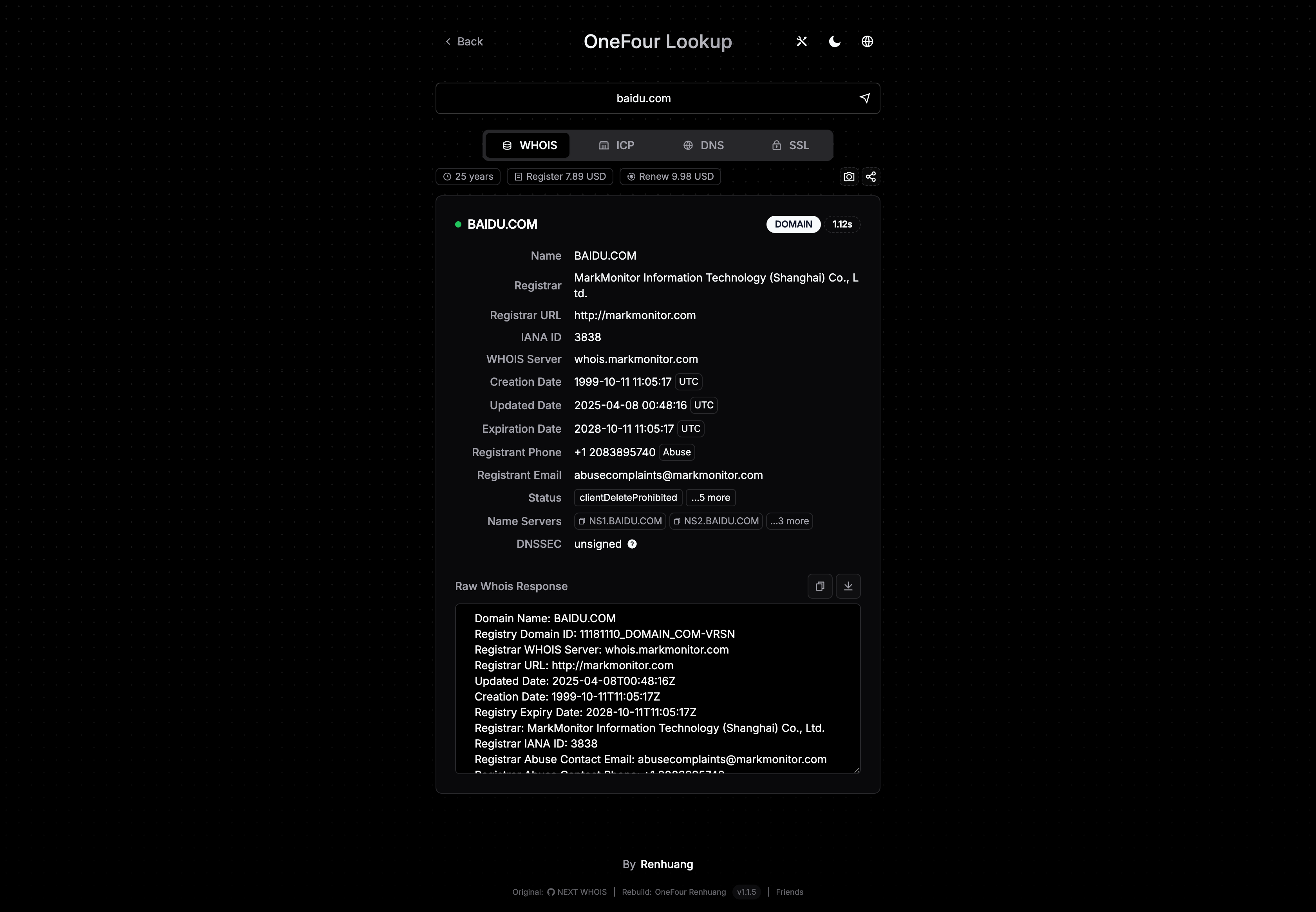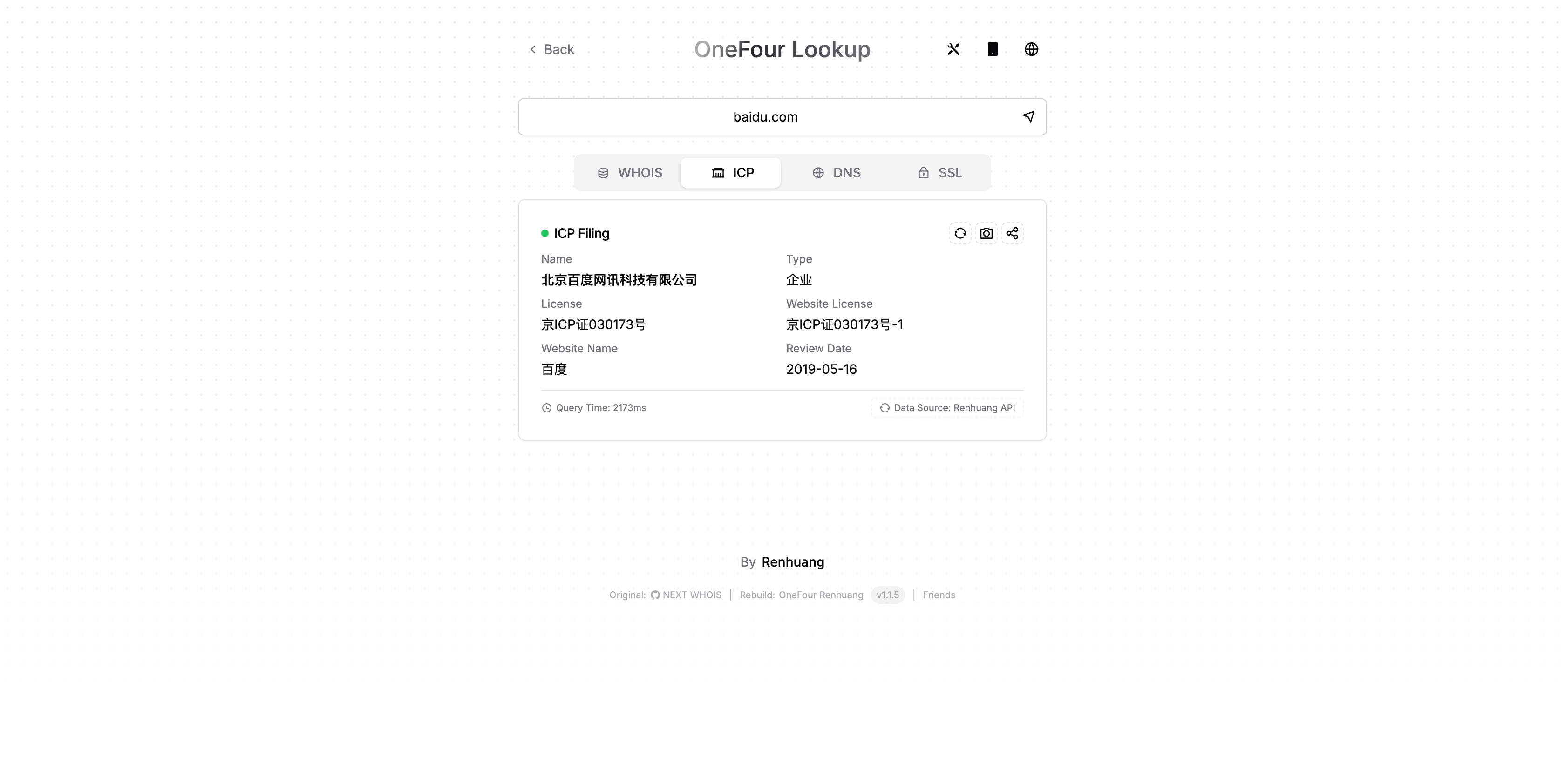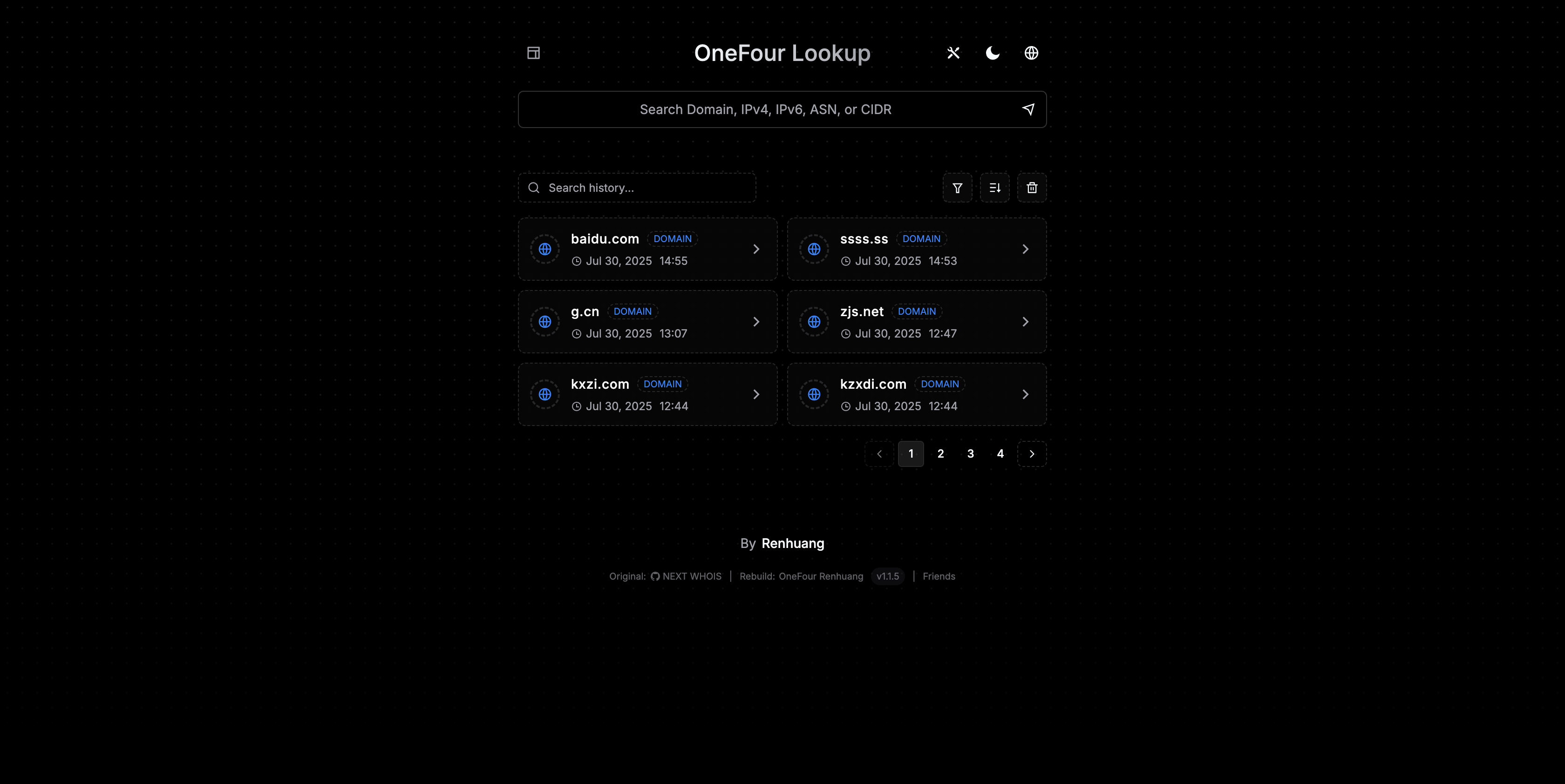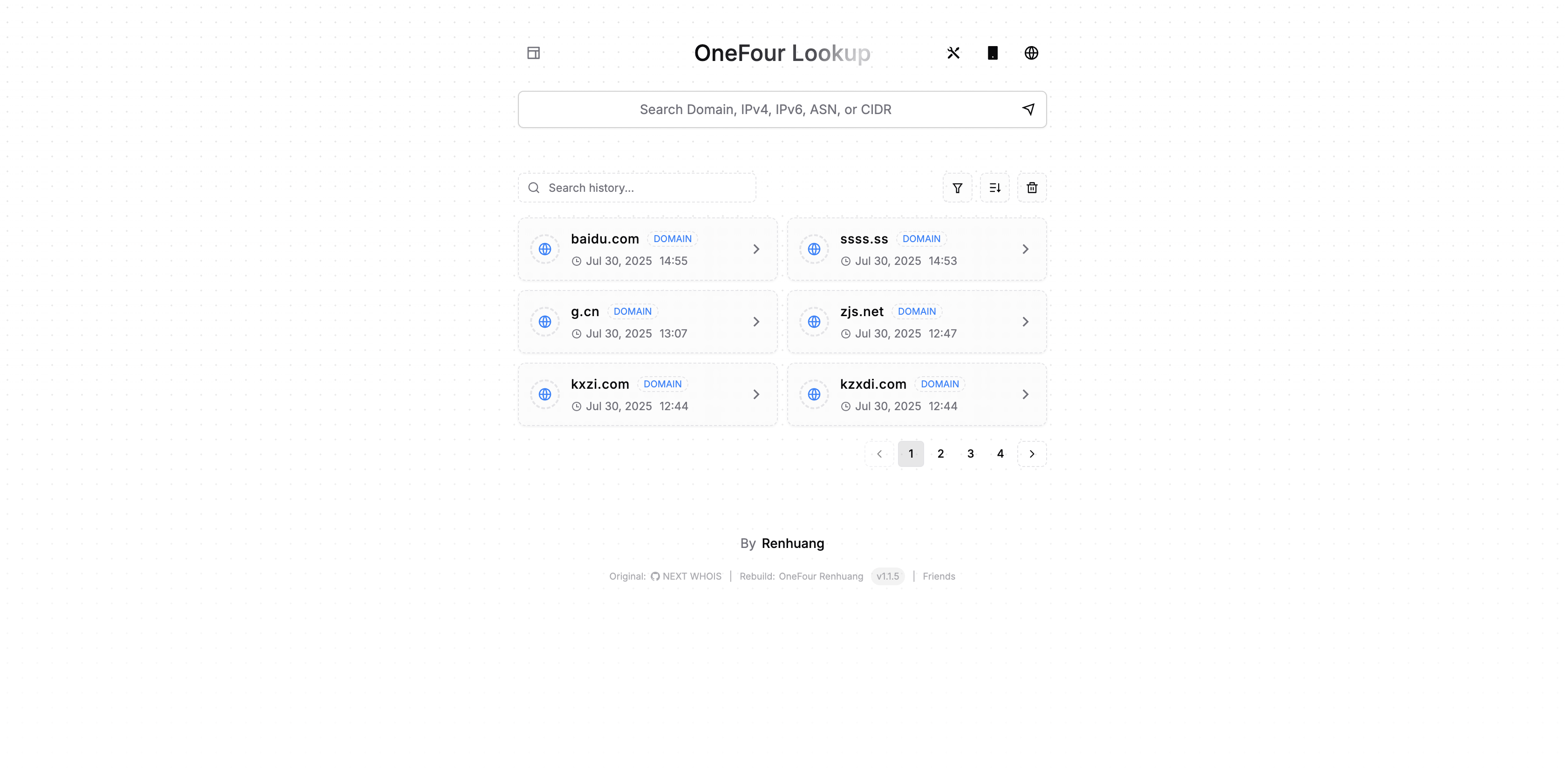 无论你是技术专家还是普通用户,OneFour 都能为你提供最专业、最便捷的 WHOIS 查询服务。现在就来体验这个强大的网络工具吧!