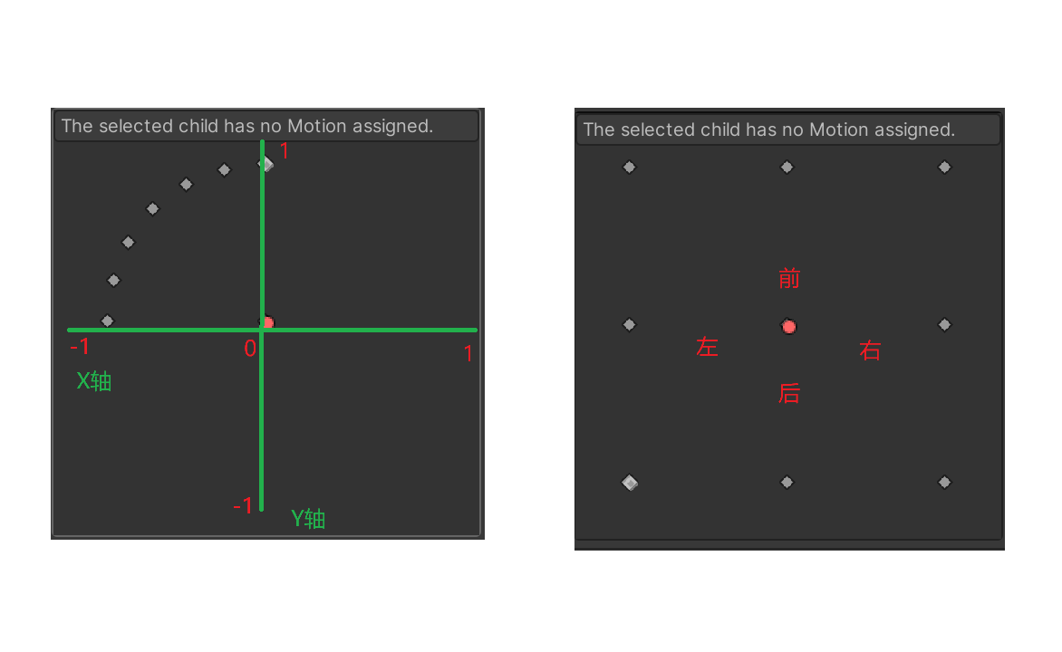4.我们建立了九个方向点(包括前、后、左、右四个基本方向,以及它们的对角线方向,再加上中间的站立状态),并为每个方向配置了相应的动画。