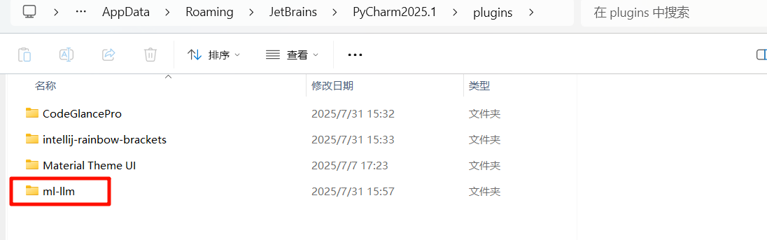 C:\用户\你的电脑名\AppData\Roaming\JetBrains\PyCharm2025.1\plugins