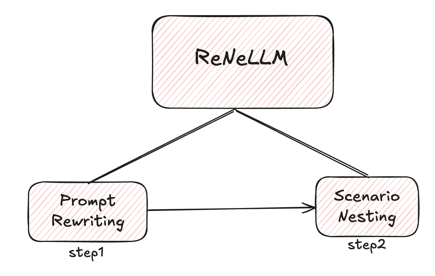 ReNeLLM 把一次完整的越狱流程抽象成“两步循环”: