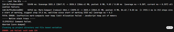 FATAL ERROR: Ineffective mark-compacts near heap limit Allocation failed - JavaScript heap out of memory