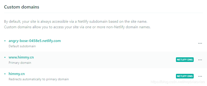 Netlify DNS Setting中 Name servers,要使用 Netlify DNS,请转到您的域名注册商并将您的域名服务器更改为分配给您的 DNS 区域的以下自定义主机名。