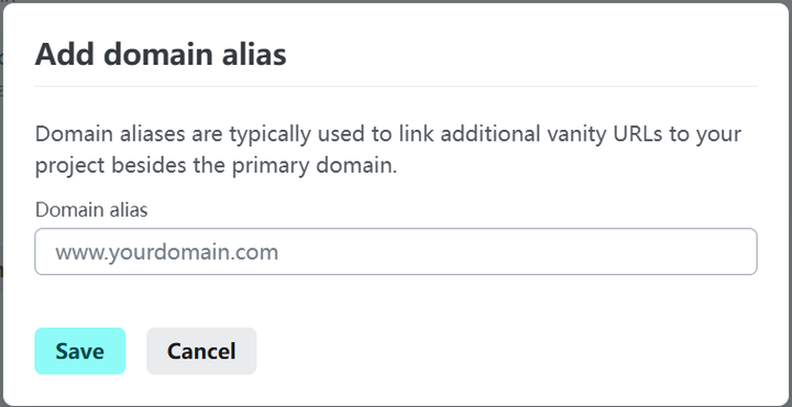 在 Netlify 仪表盘中,进入你的站点设置,点击“Domain settings”。 添加你的自定义域名(如www.example.com)。