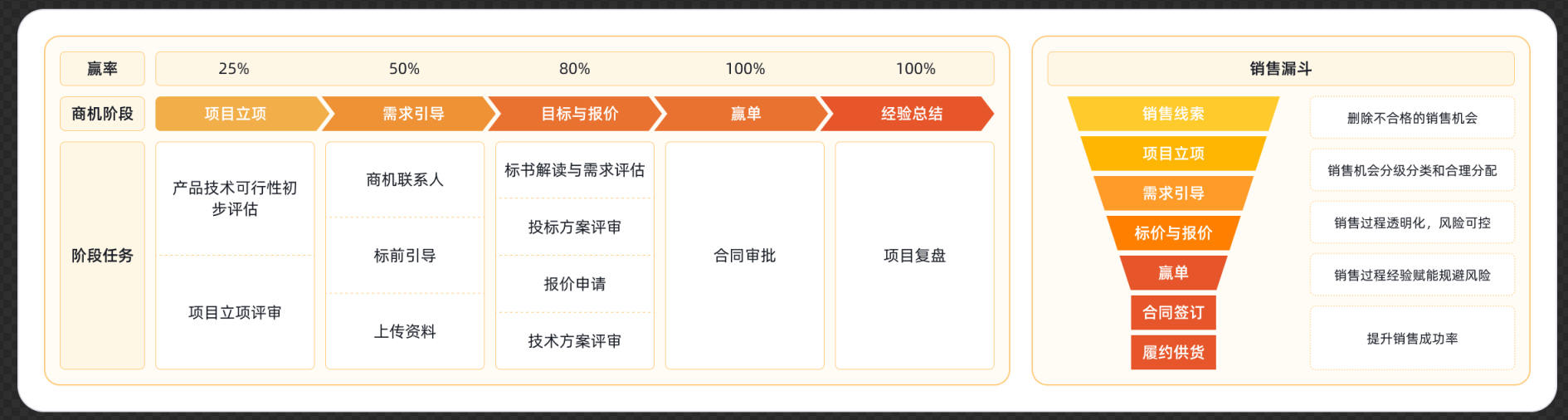 在化工/新材料行业,商机漏斗管理不仅优化了销售流程,还为业务的每个环节提供了清晰的任务指导和关键行为参考。这一工具将销售流程分解为定义明确的阶段,每个阶段都配备了基于业务逻辑和市场分析的定制化任务清单,自动推送给销售人员。借助纷享销客CRM平台,商机这些任务清单明确了销售目标的具体数值指标,如业绩目标和新增客户数,同时也包括了过程性指标,例如日程拜访计划和客户沟通记录,确保销售活动既有明确的方向,也有详细的操作步骤。即使是新员工,也能快速熟悉并掌握企业的销售方法论,有效地管理商机从立项到赢单的全过程。同时,CRM系统的阶段化赢率分析为中高层领导提供了准确的销售预测,帮助他们优化销售策略和资源配置,提升整体销售业绩。