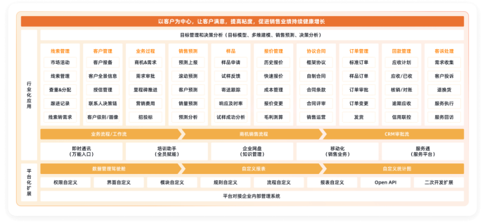 在行业加速数字化转型的趋势下,企业需以客户为中心,构建覆盖市场洞察、客户开发、订单履约到服务闭环的全流程体系,通过整合客户数据资产、拉通跨部门协作、沉淀业务规则与模型,打破传统管理壁垒。依托 CRM 系统,企业可实现客户分级管理、提升订单处理效率、降低沟通成本,更能深度挖掘客户潜在需求、支撑产品创新与风险管控,最终形成从数据到价值的转化能力,在激烈的市场竞争中构建差异化优势,推动行业向智能化、服务化转型。