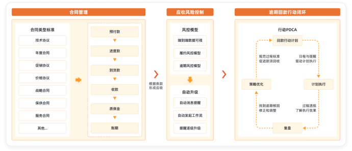 纷享销客CRM系统为此提供了全面的解决方案,能够详细记录合同的各个要素,包括具体条款、审批流程和执行的每一个环节。这一功能不仅助力销售人员及时推进生产、发货、安装和回款等关键业务活动,而且确保了整个业务流程的顺畅和合同的顺利履行。同时,系统在应收风险管理方面尤为突出,内置的逾期风险控制模型能够实时监控潜在的财务风险。一旦检测到应收账款逾期的迹象,系统便会自动触发提醒,确保销售团队能够迅速响应,从而避免了风险信息的遗漏和延迟处理。