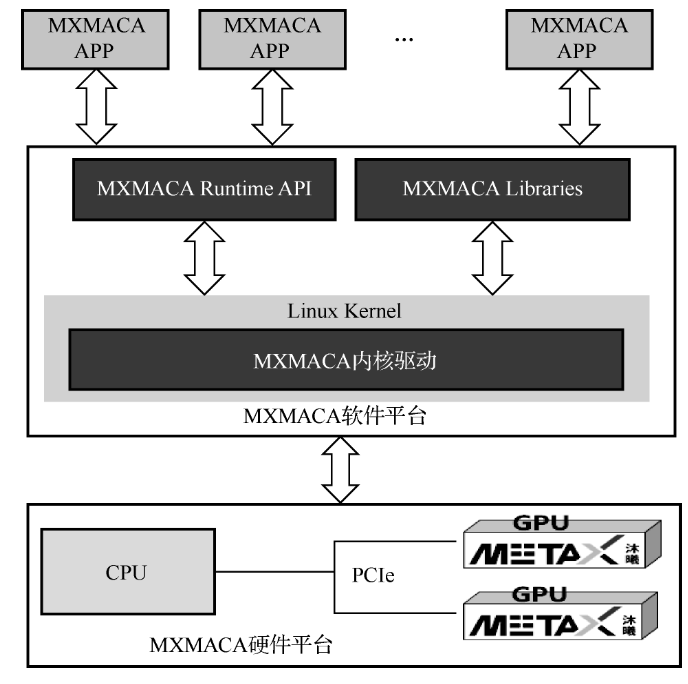 GPU配套兼容主流GPU生态的完整软件栈MXMACA:Muxi MetaX Advanced Compute Architecture。