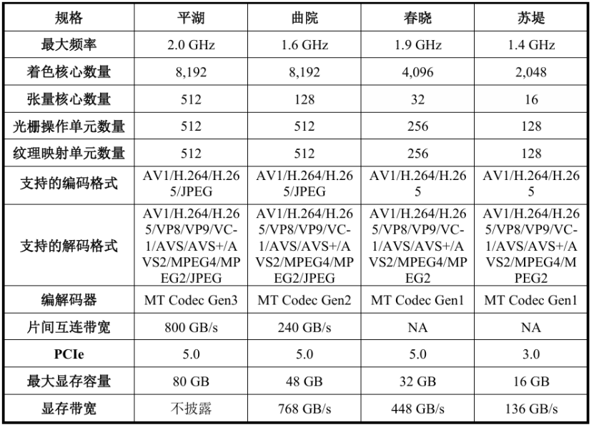 (3)摩尔线程的产品及规格如下表所示(来自招股书):