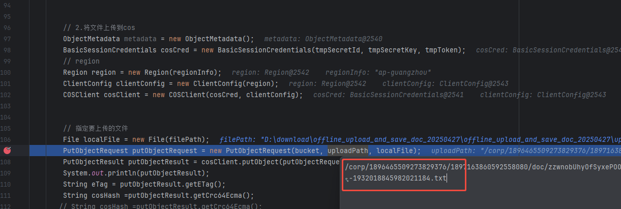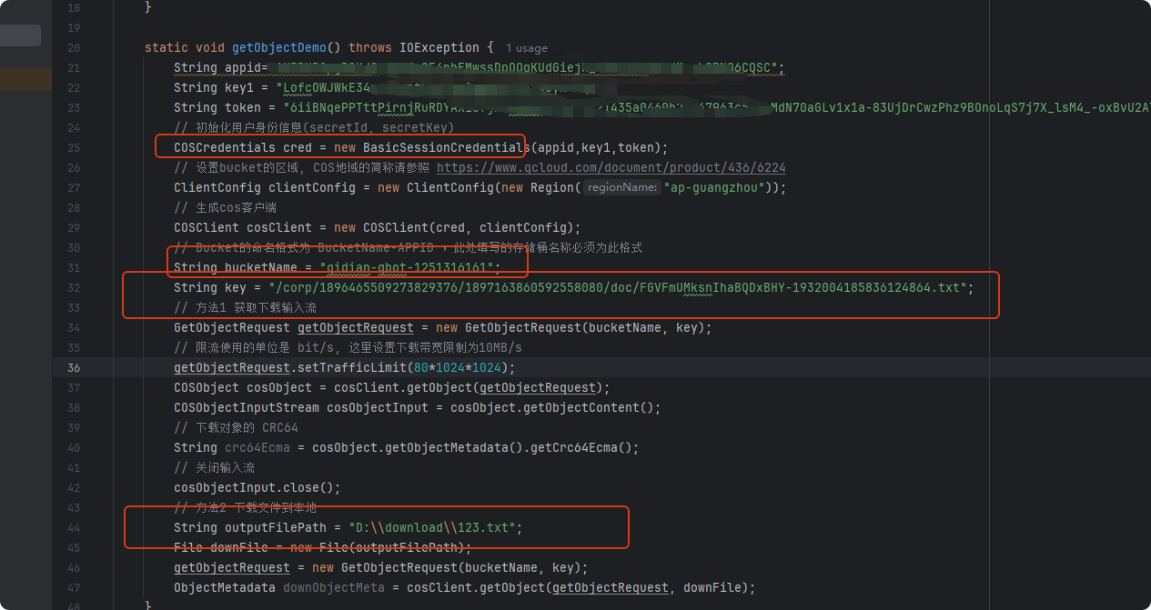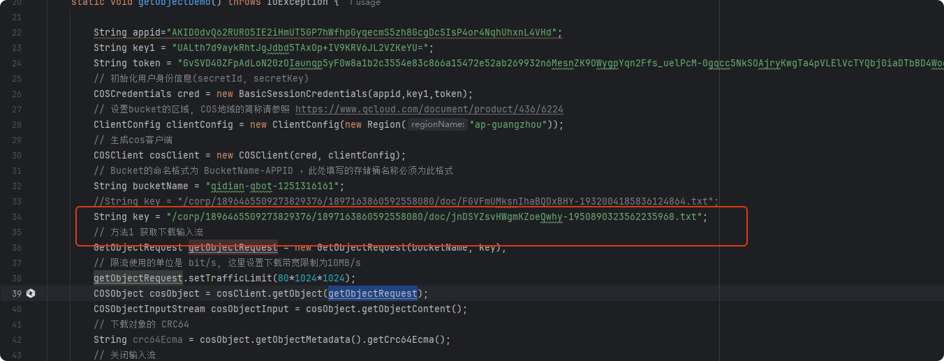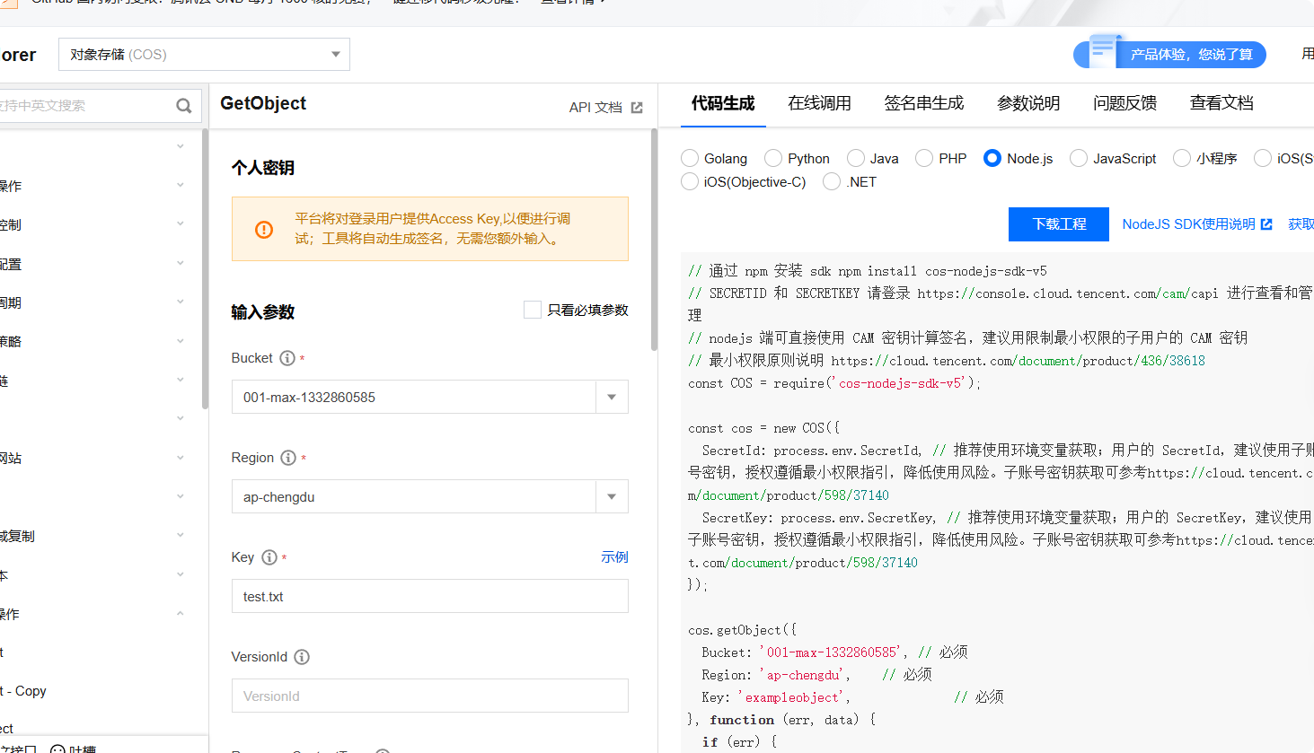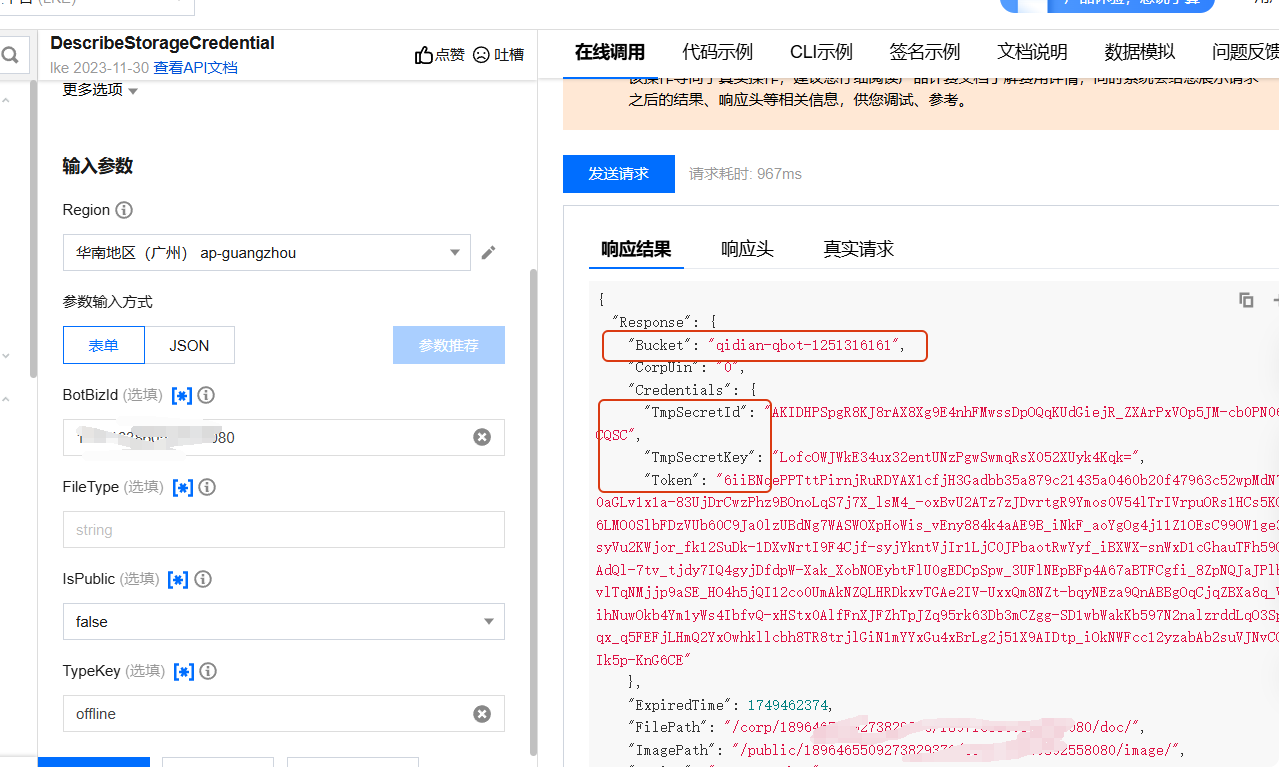 key是上传时文档时 第一步获取临时密钥返回的文件 UploadPath字段保存的位置。如果需要下载建议上传的时候保存。例如