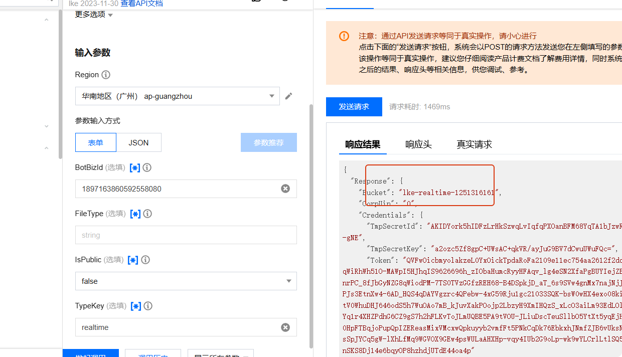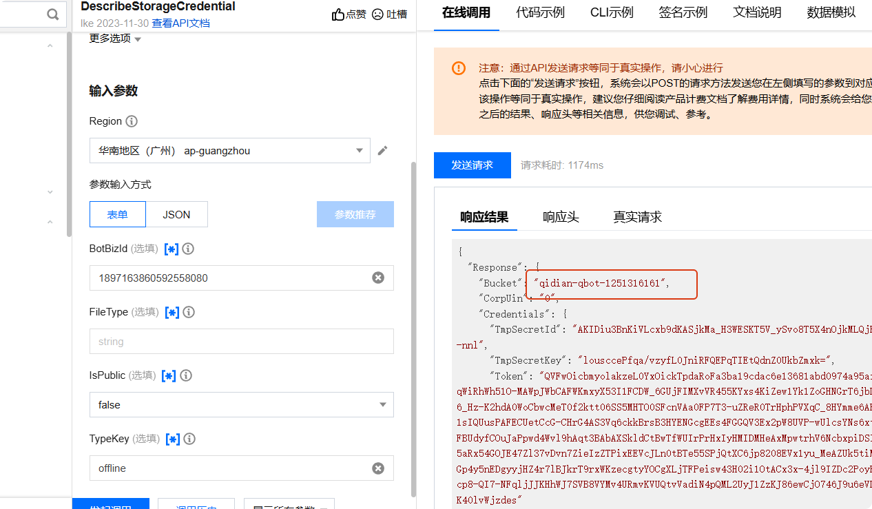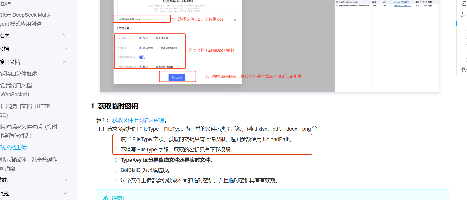 注意使用 有token的方法。 获取的临时密钥是第一步返回的。