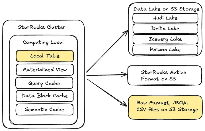 StarRocks 的整体架构支持访问多种类型的数据源: