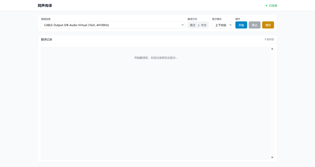 为了方便使用,我还搞了个简单的Web界面,可以启停翻译功能,还能实时看到API返回的原文和译文。