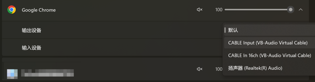 然后,当我在浏览器里看视频的时候,我把浏览器的音频输出切换到这个虚拟扬声器。