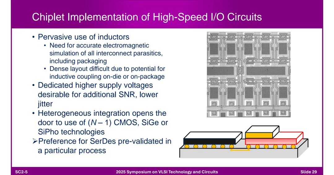 3. 芯粒实现的设计要点 ◆ 需精确仿真互连寄生参数(含封装),避免电感耦合;建议采用独立高电压供电提升SNR;可异构集成(如N-1代CMOS、SiGe、SiPho技术)。