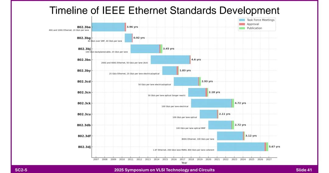 ◆ 发布节奏:每代协议速率翻倍,但开发周期(3年)滞后于AI硬件12个月升级节奏。