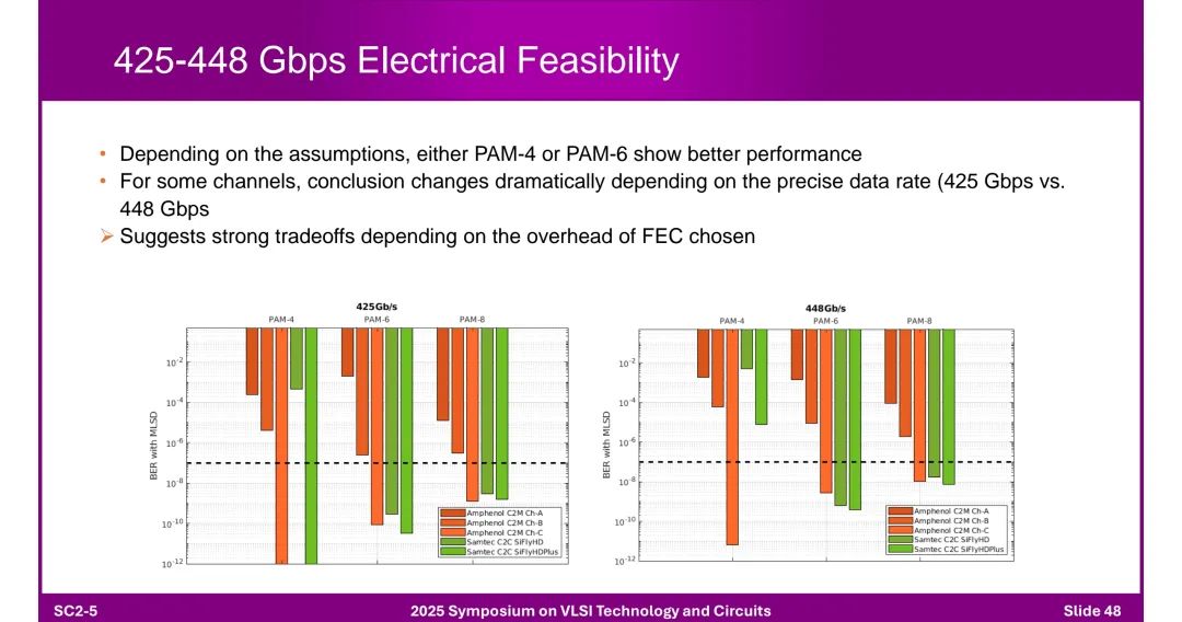 ◆ 调制方式对比:PAM-4与PAM-6/8性能受数据速率(425 Gbps vs 448 Gbps)和FEC开销影响,需根据场景权衡。 3. 光学传输突破