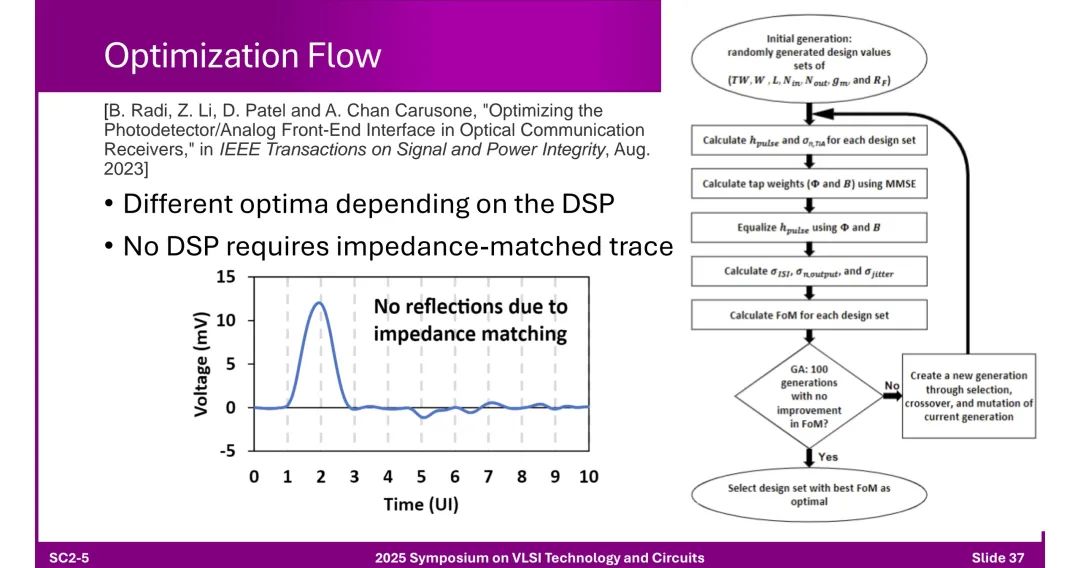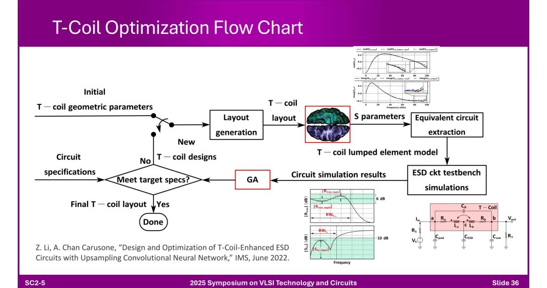 ◆ T-Coil优化:通过几何参数调整、电磁仿真、遗传算法(GA)迭代,通过电感peaking实现带宽扩展与ESD防护平衡。