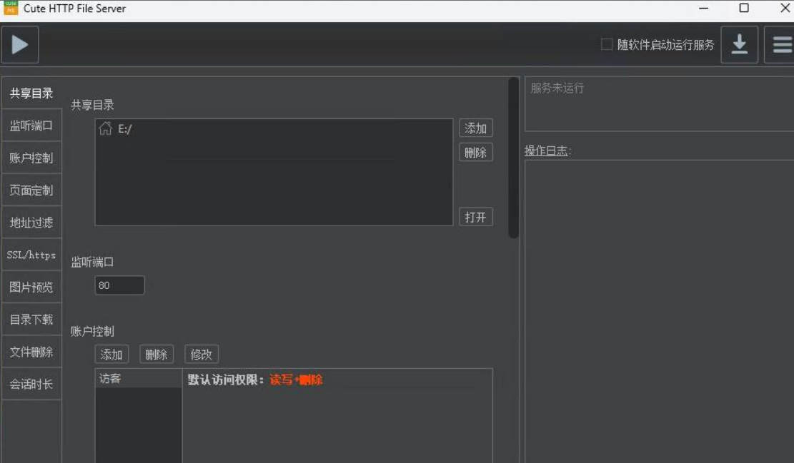 没有登录状态下获取的是访客权限,登录账号可以获取对应账号的权限,允许网页端下载、删除、重命名、和上传文件。