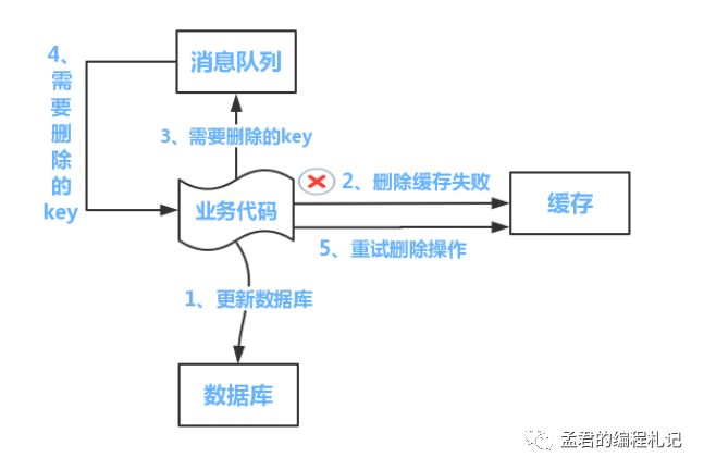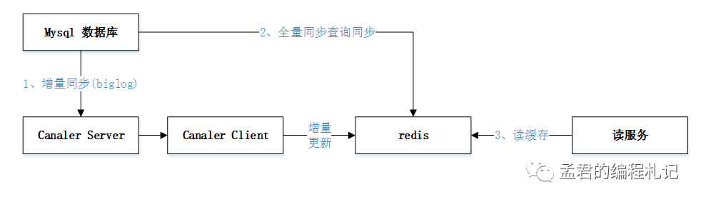 缓存维护由独立的非业务组件负责,实现了职责分离,如下图所示: