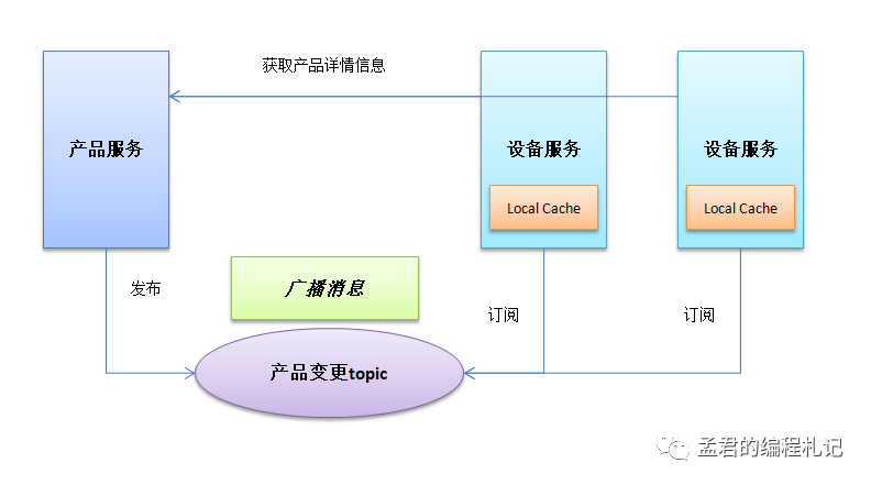 如果产品信息更新,分布式环境下device的应用服务可能有几十个,每个device应用中的本地缓存如何同步更新?