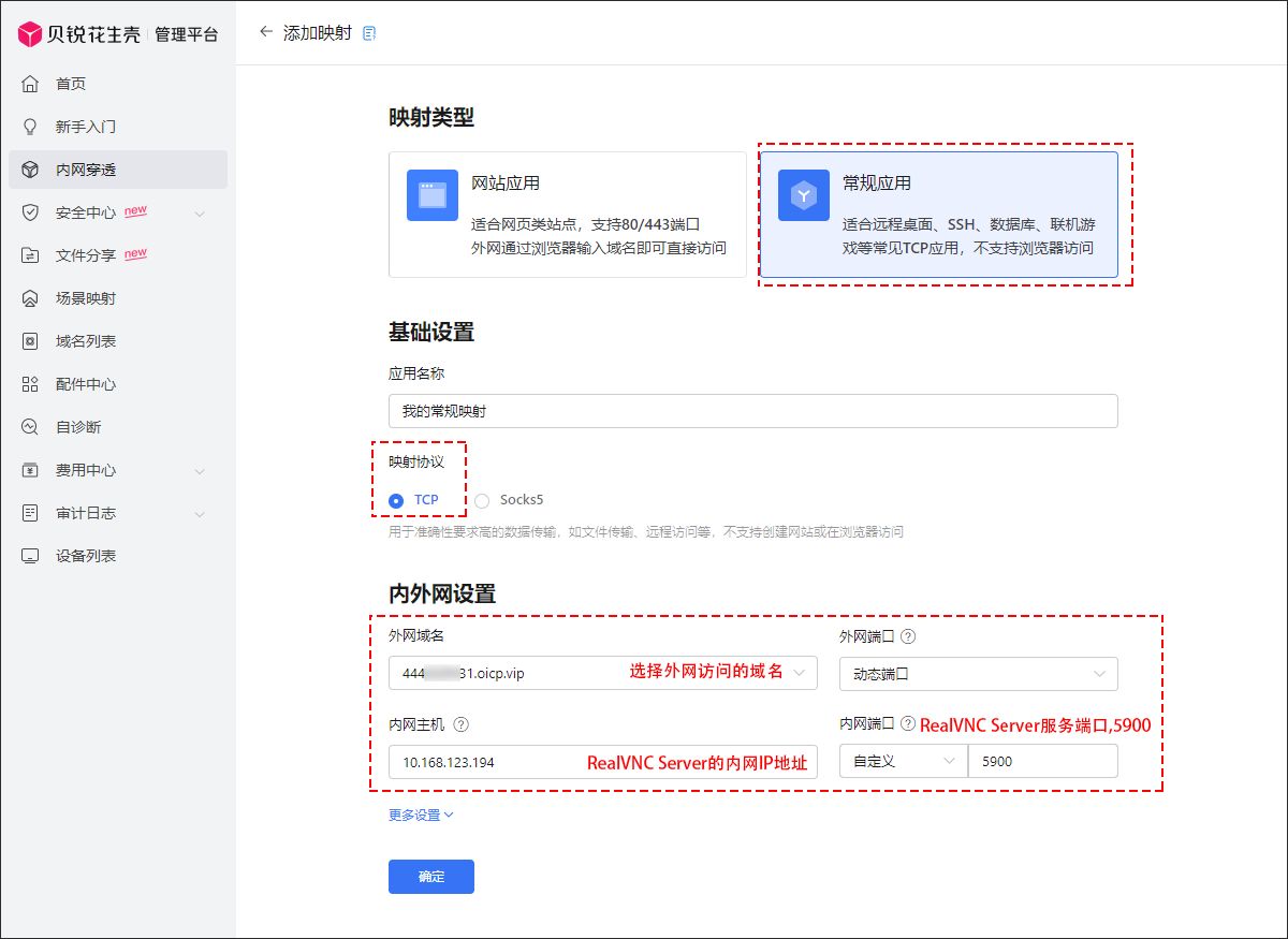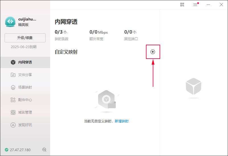 (1)安装并登录贝锐花生壳客户端。在客户端的【内网穿透】点击“+”添加映射,跳转至花生壳管理平台进行填写新增映射信息。