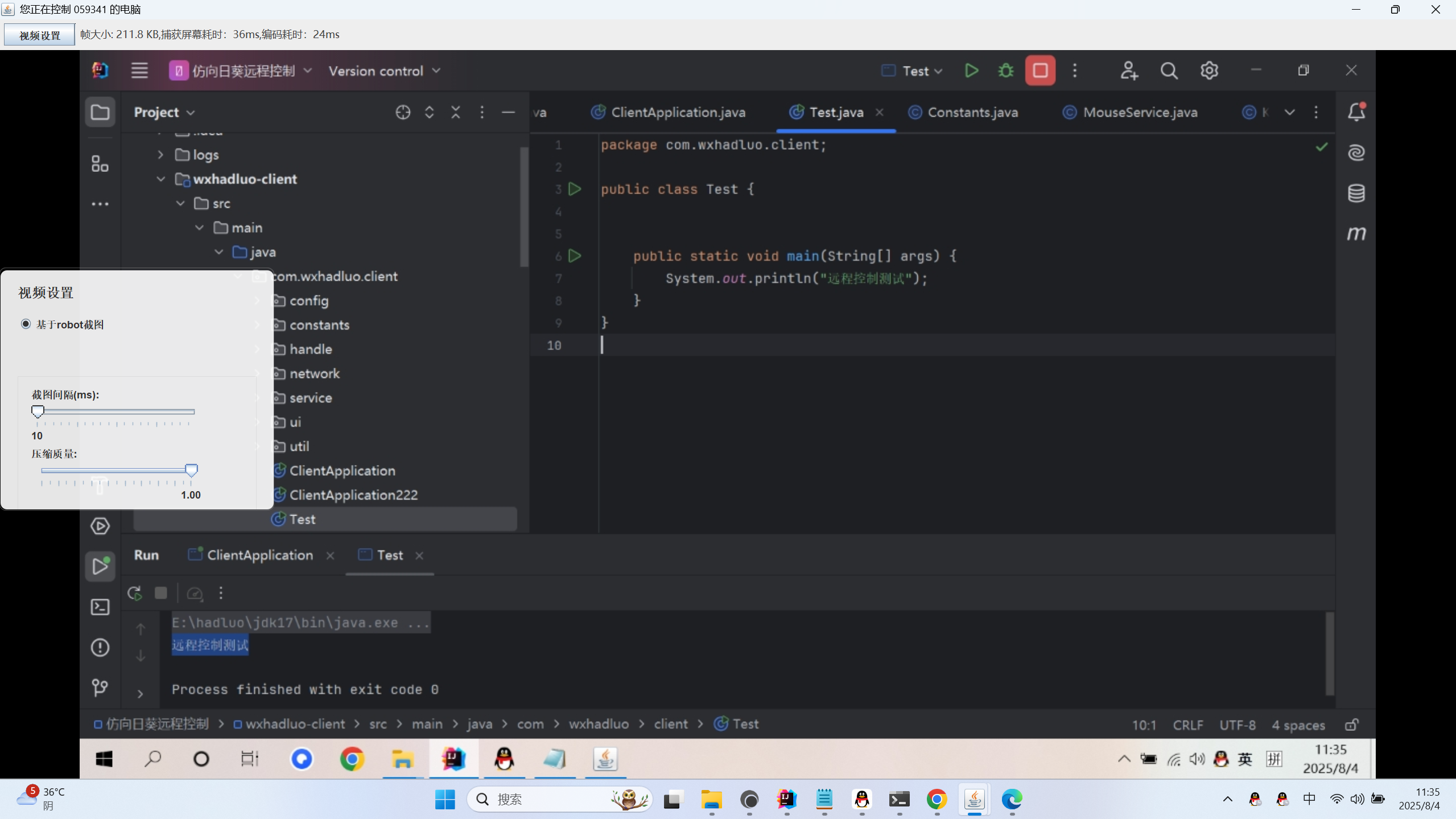 客户端当收到发起屏幕的指令后, 需要通过 JavaRobotScreenService 来实现实时循环上传当前屏幕。 所以应该是放到一个线程里面实现: