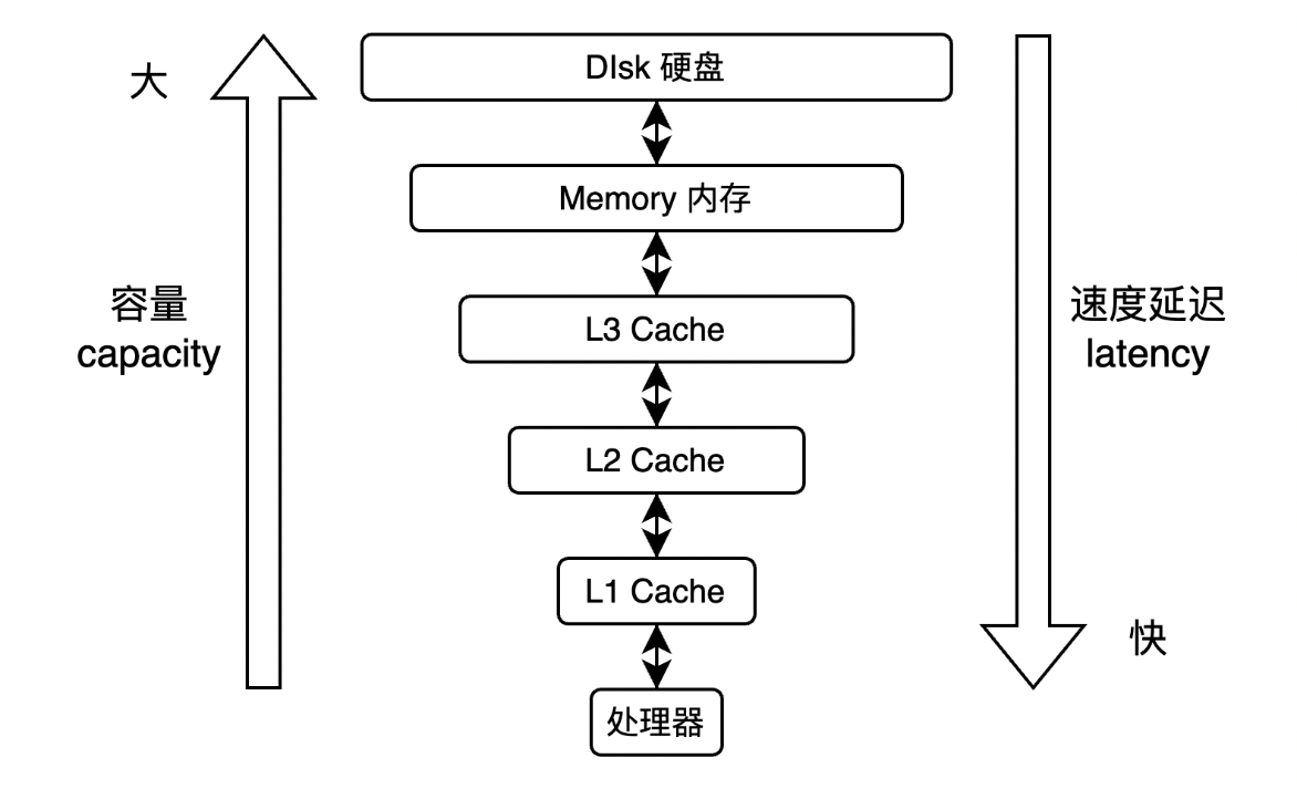 如上图所示,由于处理器和内存之间的速度差异显著,为了提高处理效率,处理器并不直接与内存进行通信,而是先将系统内存中的数据加载到处理器内部的缓存(如L1、L2或其他级别缓存)中,然后再进行操作。这一机制基于局部性原理,即处理器在读取内存数据时,通常以块为单位进行读取,每一块数据称为缓存行(Cache Line)。当处理器完成对数据的操作后,并不会立即将结果写回内存,而是先写入缓存中,并将该缓存行标记为脏(Dirty)状态。只有当该缓存行被替换时,数据才会被写回内存。这一过程被称为写回策略(Write Back)。