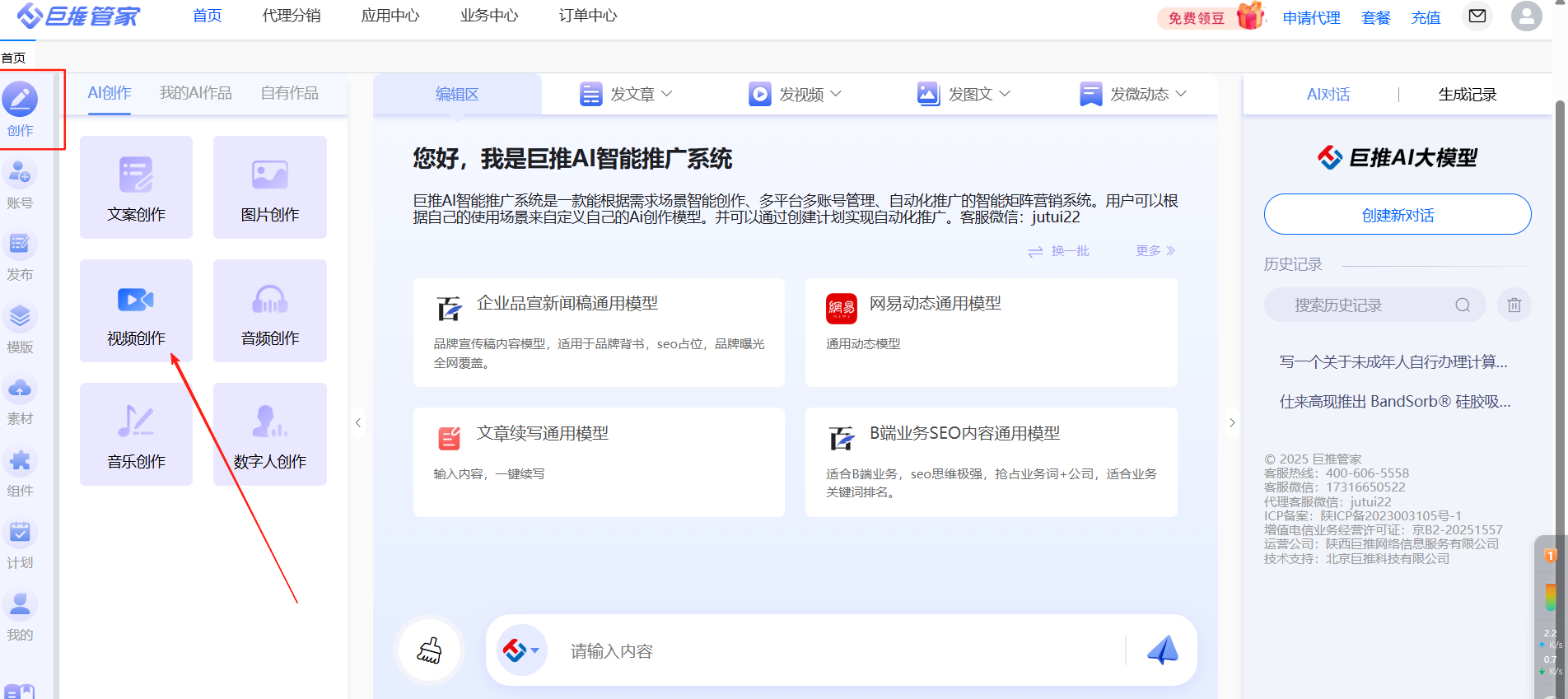 第一步:百度搜索巨推管家,登陆后台。当用户在浏览器中输入关键词进行搜索后,很快就能找到巨推管家的官方网站链接。点击进入官网页面,简洁明了的界面设计让人一目了然。此时只需按照提示完成注册登录步骤,就可以顺利进入专属的后台管理区域了。在这里,各种功能模块整齐排列,为后续的视频创作做好了充分准备。