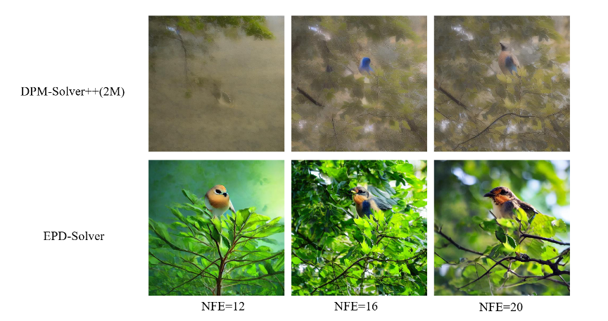 通过 EPD-Solver,西湖大学的研究人员展示了如何利用其创新的并行梯度评估机制 ,在不增加单步推理延迟的前提下 ,高效且精确地减小了生图模型每步采样的截断误差,缓解扩散模型在低步数采样下的图像质量退化问题 。