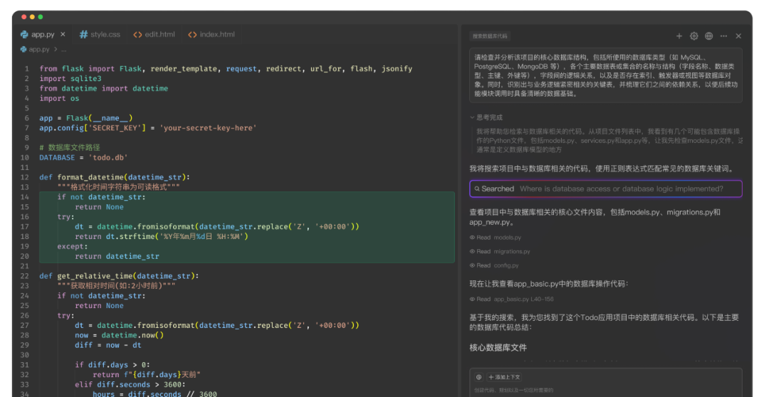通过对动态任务的执行规划,Agent 面临任务变更时具备了自适应能力,能够实时感知用户意图或项目状态变化,进而调整执行路径,支撑起变化频繁的复杂项目级开发。