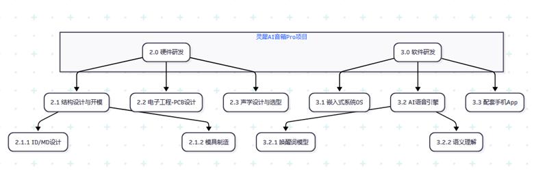 (1)WBS(工作分解结构)先行:我们首先使用WBS将整个“灵犀Pro”项目分解到可管理的工作包。这是所有规划的基础。