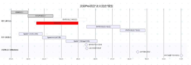 面对这种“冰火两重天”的特性,我们设计了一套“硬件瀑布 + 软件敏捷”的混合项目管理模型。