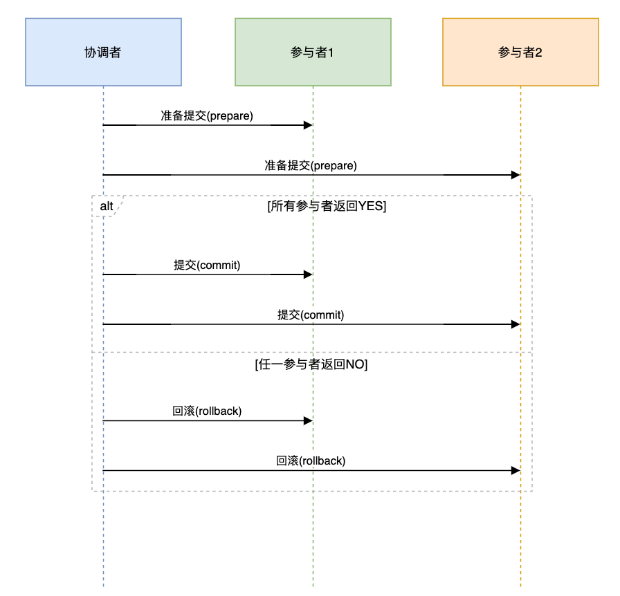 2PC是最经典的分布式事务协议,通过协调者(Coordinator) 统一调度参与者(Participant) 的执行。