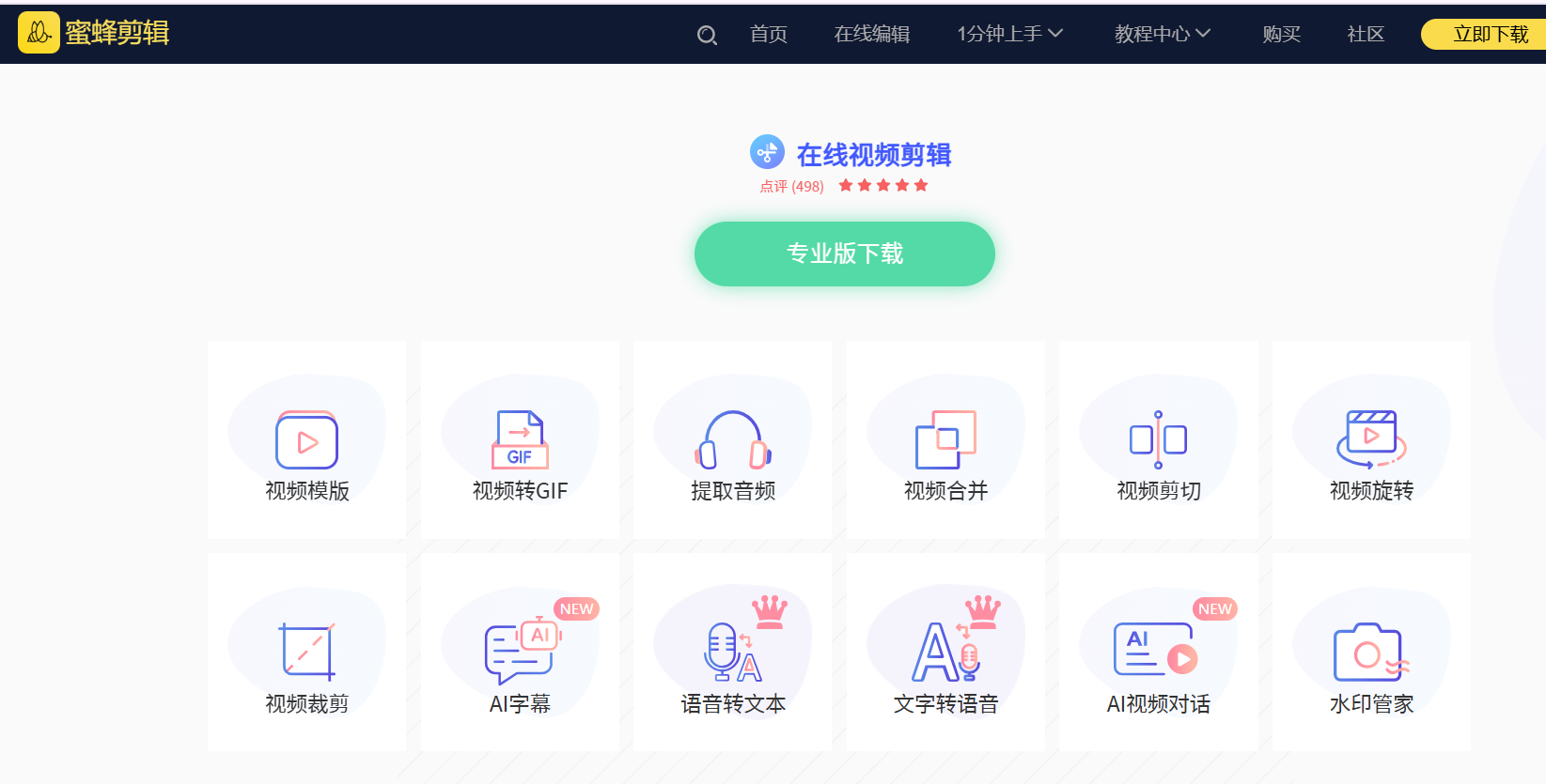 再来看国内的一款小众利器——蜜蜂剪辑。这是一款专注于移动端使用的轻量化APP,非常适合随时随地记录生活点滴并进行即时分享。尽管体积小巧,但它依然具备了裁切、合并、调速等多种实用功能,并且能够直接从手机相册导入素材进行创作。遗憾的是,由于定位偏向日常娱乐用途,因此对商业级项目的支持力度相对较弱。