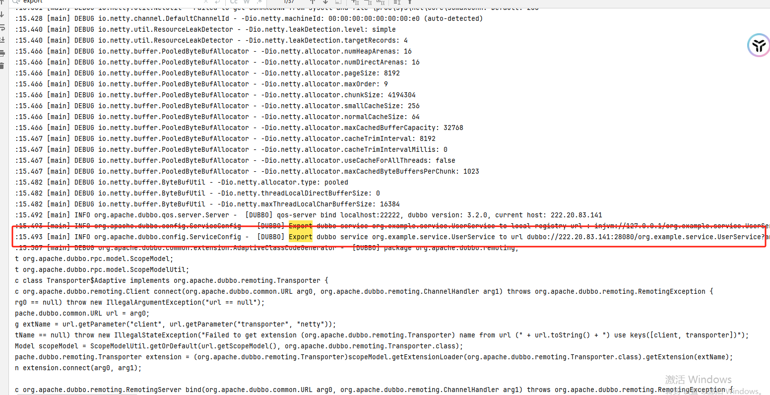我们先启动dubbo-prod的main,然后再启动dubbo-consumer的main来测试是否调用成功,对应的日志能否输出