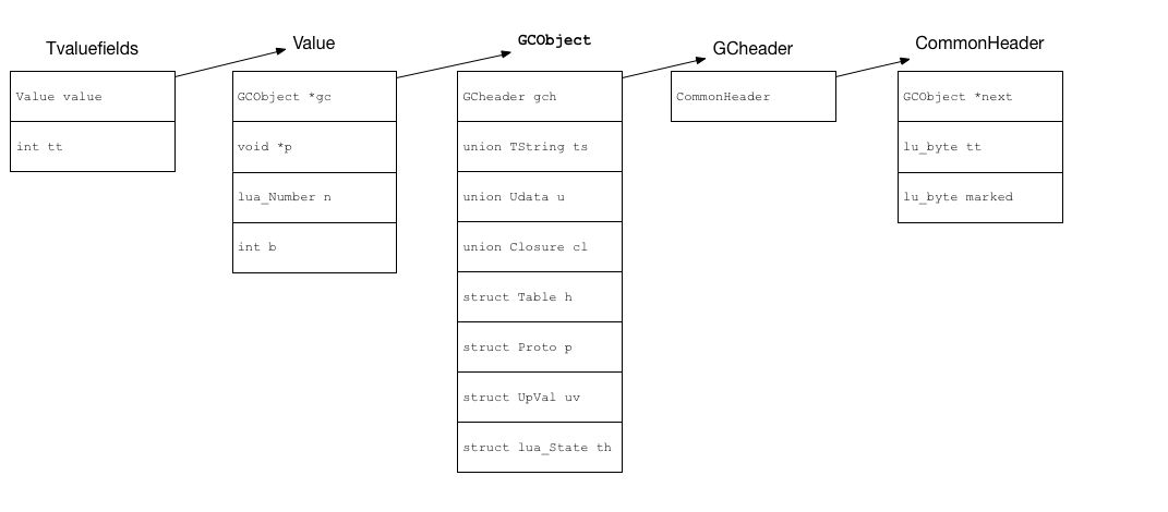 #define CommonHeader struct GCObject *next; lu_byte tt; lu_byte marked