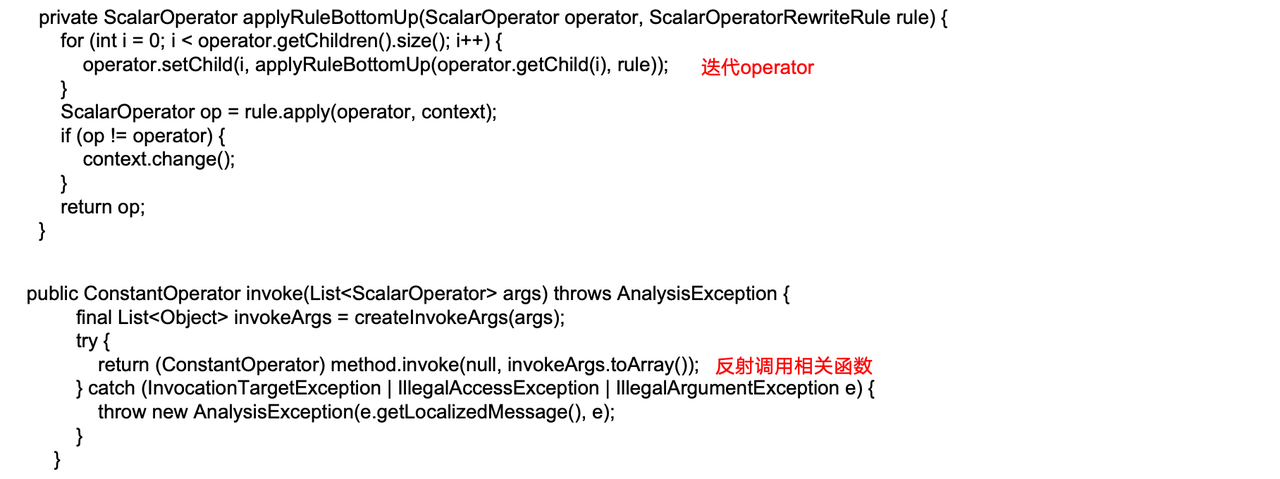 (3)其中 FoldConstantsRule 规则扮演着至关重要的角色,它专注于常量折叠,通过不断迭代操作符,对函数类型的操作(如 callOperator )利用预置的函数进行反射调用,从而提前计算出常量值,实现表达式的简化。